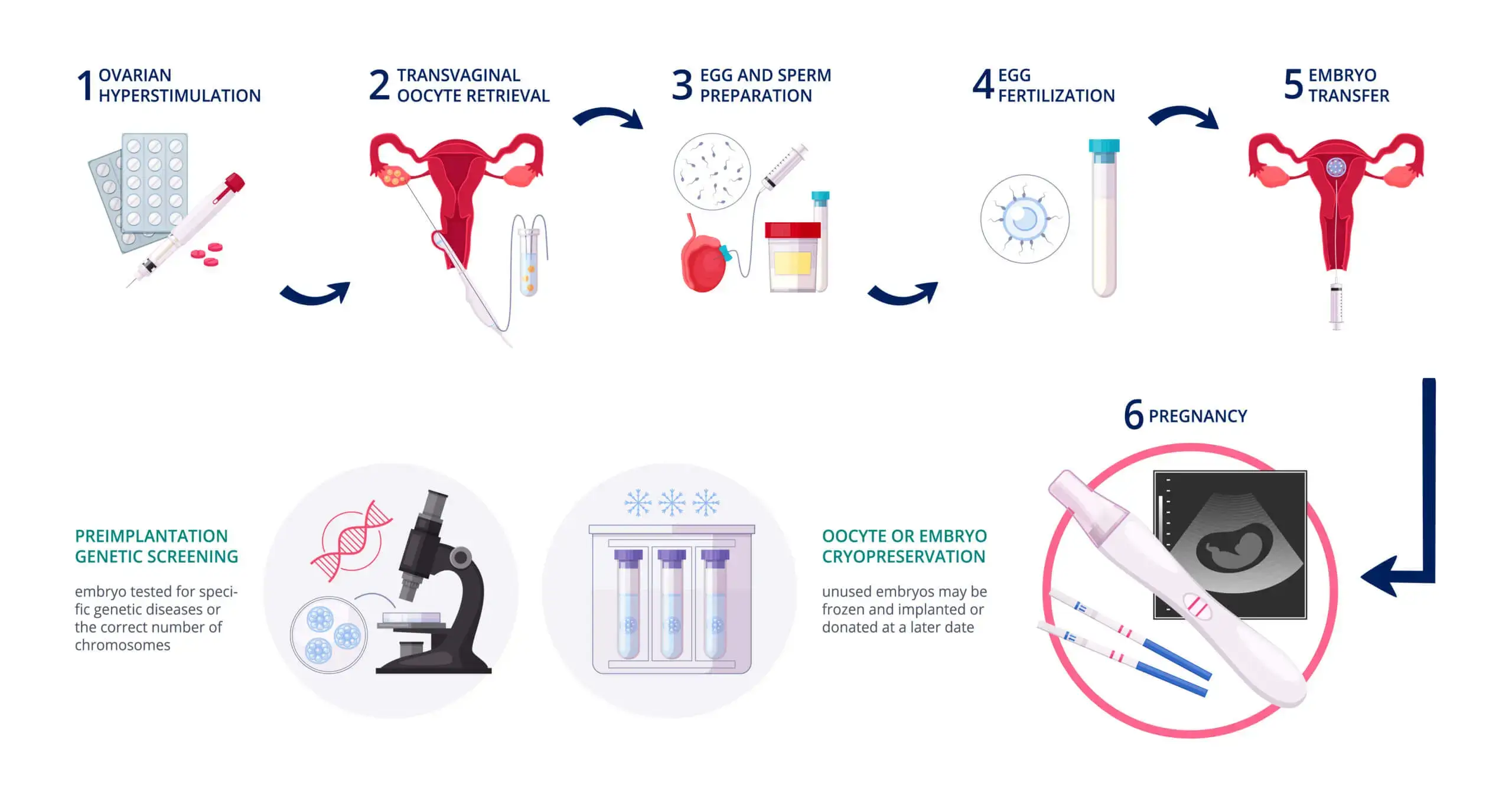Also, the transfer phase can comprise one or more inside the woman’s uterus, and freeze the rest. In case the IVF attempt did not work, the patient can repeat only the last step.